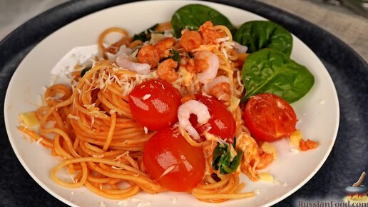 Идеальное сочетание оттенков. Паста с креветками и шпинатом