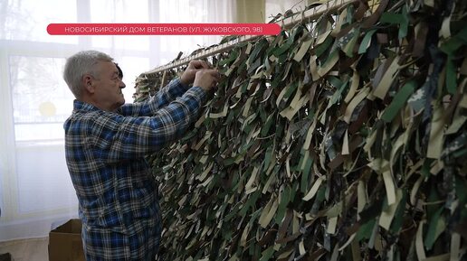 Маскировочные сети из цветных «паучков» плетут ветераны в Новосибирске