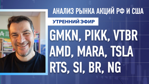 Анализ рынка акций РФ и США/ GMKN, PIKK, VTBR, AMD, MARA, TSLA/ RTS, SI, BR, NG