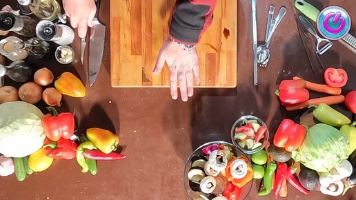 Салат с курицей-гриль и запеченными овощами