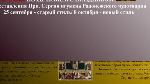 Поздравление с праздником преставления прп. Сергия Радонежского 8 октября 2025