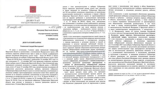 Запрос прокурору Иркутской области о проведении комплексной проверки