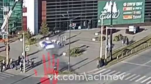 Возле ТК «Елки» легковушка на скорости вылетела на оживленный тротуар. ВИДЕО (1)