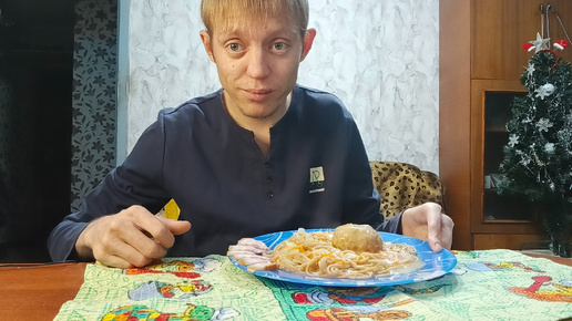 Мукбанг// Гречневая Лапша С Подливой И Рыбной Котлетой