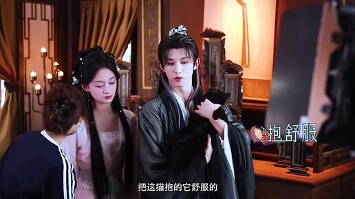 Го Цзюнь Чэнь, Ся Мэн и кот на съёмках фэнтези-дорамы «Завеса пламени»
