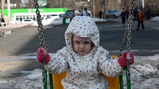 Сама в два года залезла на качели / Песочные дела / Мартовские фотографии