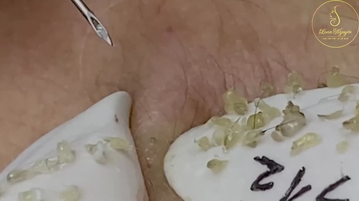Косметолог делает чистку лица от Акне огромные прыщи и комедоны
