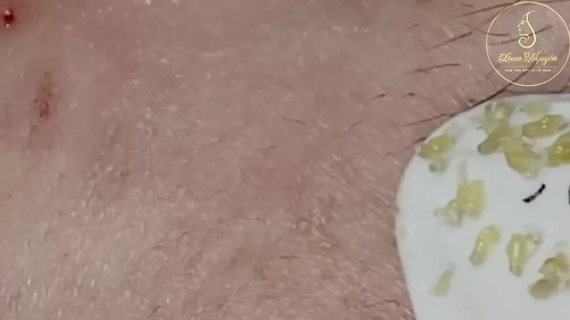 Косметолог делает чистку лица от Акне огромные прыщи и комедоны
