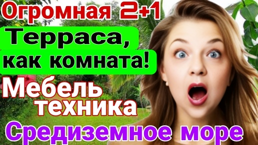 Огромная 2+1! Терраса, как комната! Мебель, техника! Средиземное море. Мерсин.