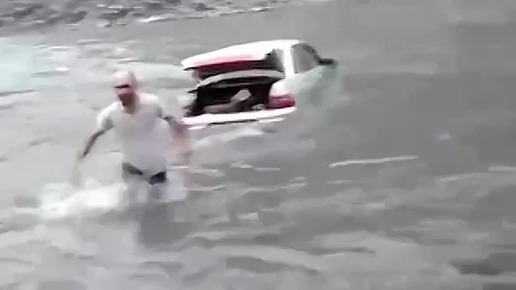 Водитель из Дагестана на спор заехал на тачке в реку в Тляратинском районе