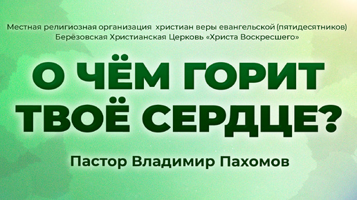 О ЧЁМ ГОРИТ ТВОЁ СЕРДЦЕ? | Пастор Владимир Пахомов (г. Берёзовский)