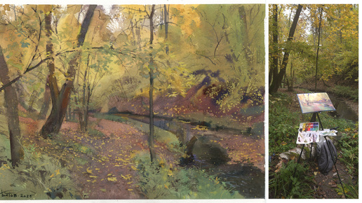 20251008 Речка Битца. Москва. Натурный этюд гуашь