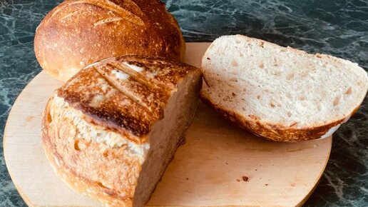 Хлеб без замеса на пшеничной закваске, с тонкой хрустящей корочкой