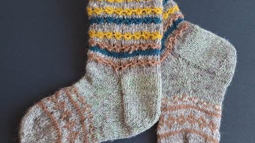 НОСКИ спицами с французской пяткой , с использованием остатков пряжи. Часть 2.
