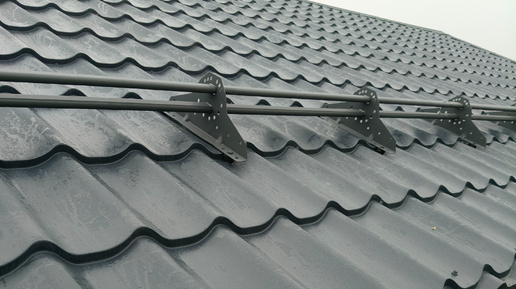 Монтируем металлочерепицу, снегозадержатели, водосток.