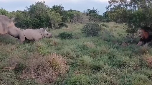 Игривый детеныш носорога решил поиграть со львом – необычное видео