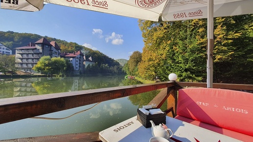 Уютное кафе у озера: пение птиц, вода и звуки природы