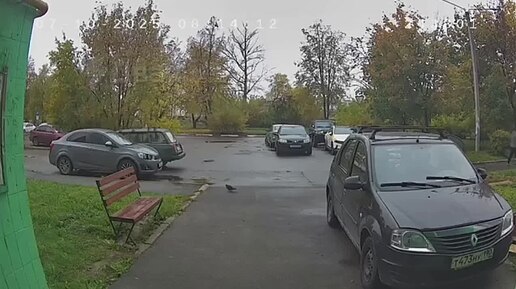 Треш какой-то! В питерском дворе автовладелец решил не ставить на ручник машину