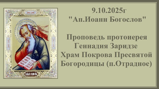 9.10.2025г"Ап.Иоанн Богослов"Проповедь протоиерея Геннадия Заридзе. Храм Покрова Пресвятой Богородицы (п.Отрадное)