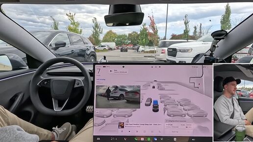 Смотрите, как Tesla с Full Self-Driving v14.1 превращает хаос парковки Costco в настоящее шоу!