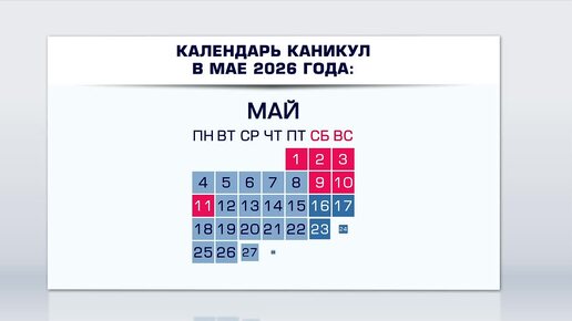 Календарь каникул в мае 2026 года появился в Туле
