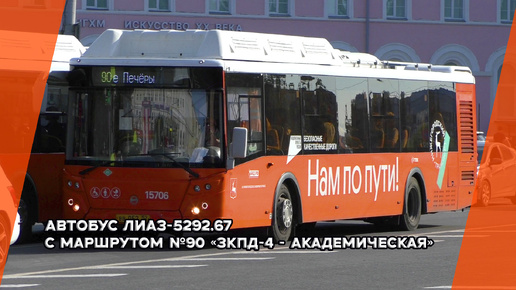 Автобус ЛиАЗ-5292.67 с маршрутом №90 "ЗКПД-4 - Академическая" на площади Минина и Пожарского
