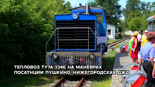 Тепловоз ТУ7А-3346 выполняет маневровые передвижения по станции Пушкино, Нижегородская ДЖД