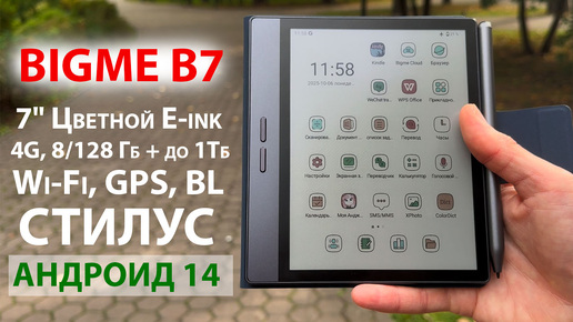 КНИГА-ПЛАНШЕТ🔥 BIGME B7 - 7" Цветной E-ink, 4G, 8/128 Гб + до 1Тб, Wi-Fi, GPS, АНДРОИД 14, BL,СТИЛУС