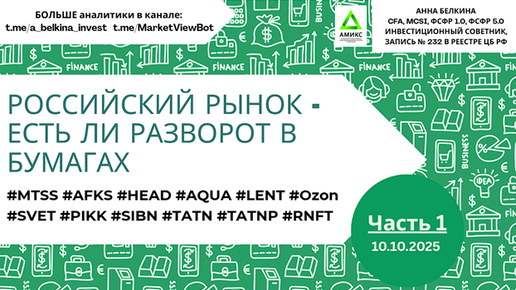Российский рынок 10.10.2025 #MTSS #AFKS #HEAD #AQUA #LENT #Ozon #SVET #PIKK #SIBN #TATN #TATNP #RNFT ЧАСТЬ 1