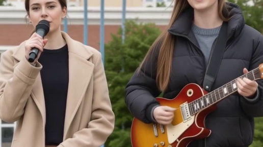 Девушки музыканты в городе поют