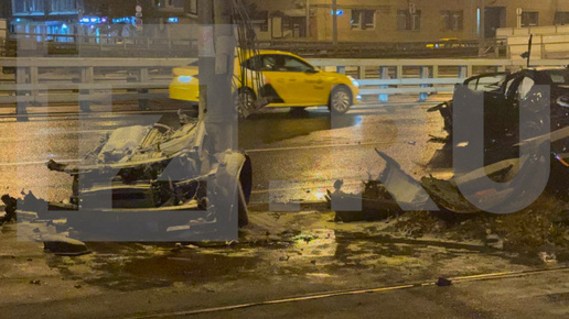 Машину разорвало пополам: иномарка влетела в столб на шоссе Энтузиастов в Москве