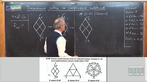 Олимпиадная задача на определение сопротивления цепи между точками А и В по приведенной схеме