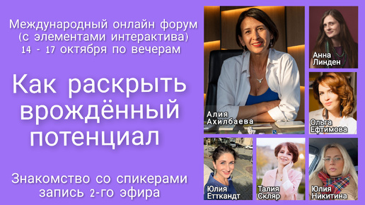 Знакомство со спикерами форума – Как раскрыть врождённый потенциал (2 эфир)