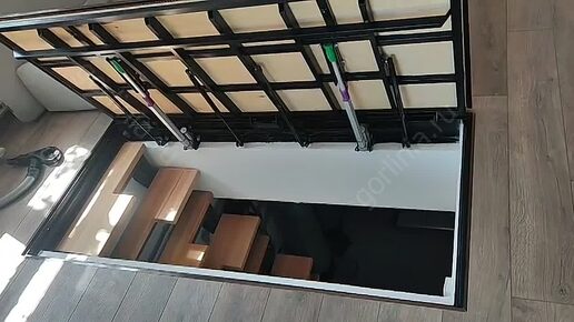 Люк с электроприводом напольный под ламинат с защитным профилем и убранными в четверть актуаторами