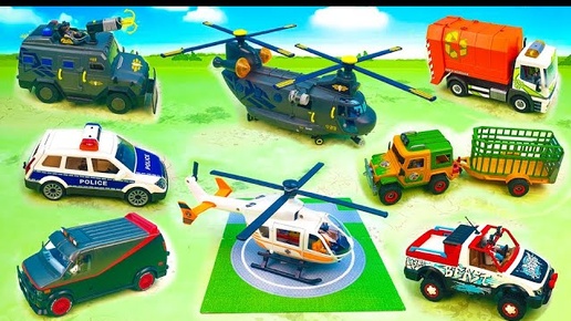 Toy Ambulance, Garbage truck, Police car, Chinook helicopter, Rescue vehicle | Toys Review for Kids