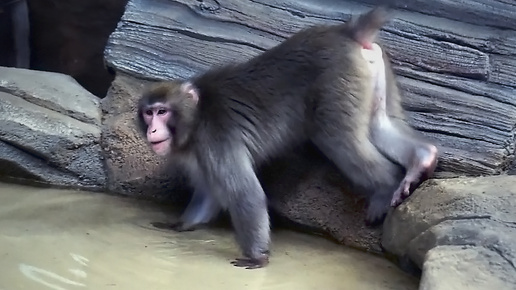 Новые жители зоопарка - японские макаки Кайко и Китана, осваивают вольер с бассейном..