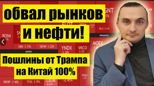 Обвал рынков и нефти!/Обвал Биткоина и криптовалют/Трамп вводит 100% пошлины на Китай/Прогноз акций