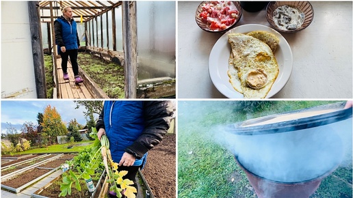 27 сентября. Часть 6. Дачный обед. Убираюсь в удобрениях. Пробую дергать дайкон и репу