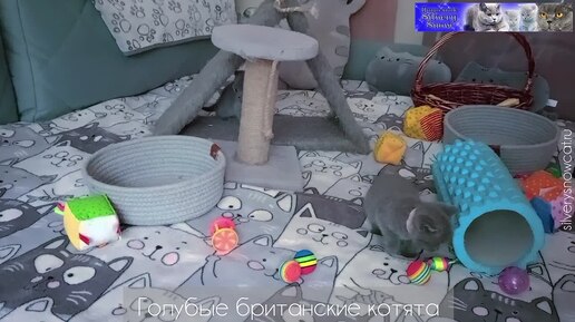 Посмотрите, какие малыши резвятся в манеже! Голубые британские котята в возрасте чуть больше месяца.