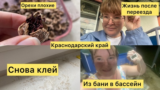 Ливни на юге. Убираем помидоры. Орехи плохие. Уборка в котельной. Новая полочка в баню. Из бани в бассейн.