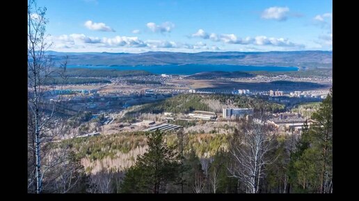 Осень на перевале. Ильменский хребет. Вид на г. Миасс, Машгородок, поселок и озеро Тургояк.