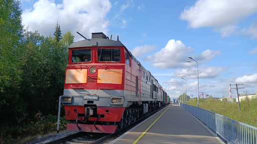 2ТЭ10Ук-0410 со сборным грузовым поездом и приветливой бригадой следует через О.п Эжва