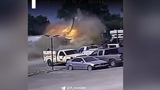 На видео — момент, как легкомоторный самолёт падает на авто в Техасе