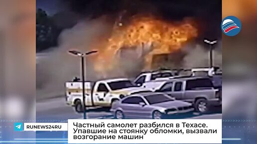 Частный самолет разбился в Техасе. Упавшие на стоянку обломки, вызвали возгорание машин