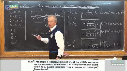 Задача на определение мощности трех резисторов соединенных последовательно в цепь и определения мощности во всей цепи