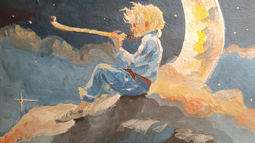Рисуем вместе картину, гуашью "Мальчик на луне" или "Маленький принц". Учимся рисовать вместе).