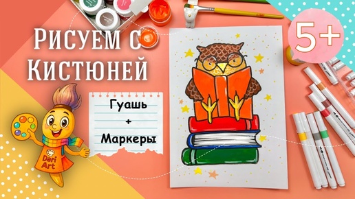 Рисуем с Кистюней - _Мудрая сова_ __ Гуашь + акриловые маркеры
