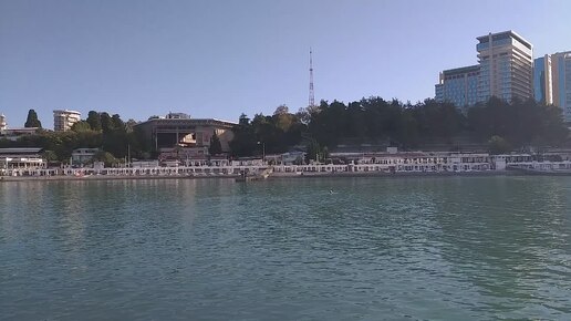 Вид на пляж "Маяк" в Сочи с защитного волнолома