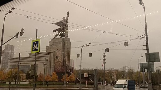 Москву накрыл балканский циклон. Еду на трамвае № 25 под дождём от проспекта Мира до Останкино. Строительство парка вместо монорельса.