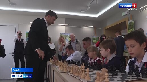 Сенатор от Крыма, гроссмейстер Сергей Карякин дал школьникам сеанс одновременной игры в Судаке